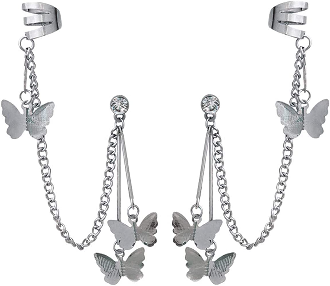 Cuff Chain Earrings for Women,Cuffs Tassel Earrings Butterfly, Ear Cuff Droping Chain Stud Earrings for Girls Gifts