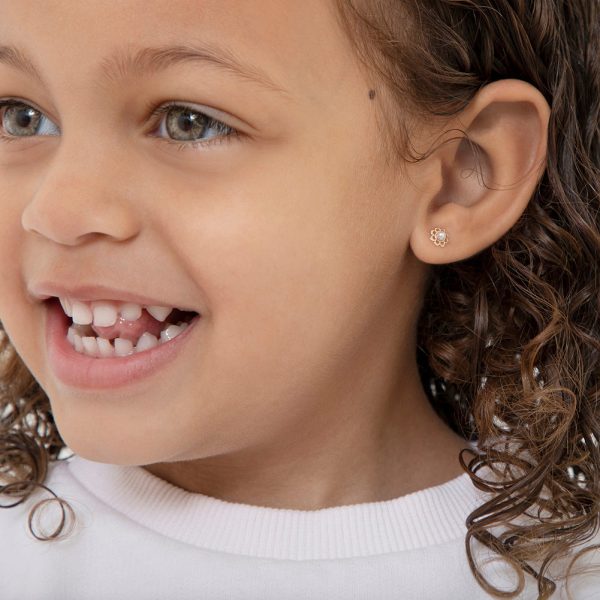14k Gold Flower Freshwater Pearl Baby / Toddler / Kids Earrings Safety Screw Back